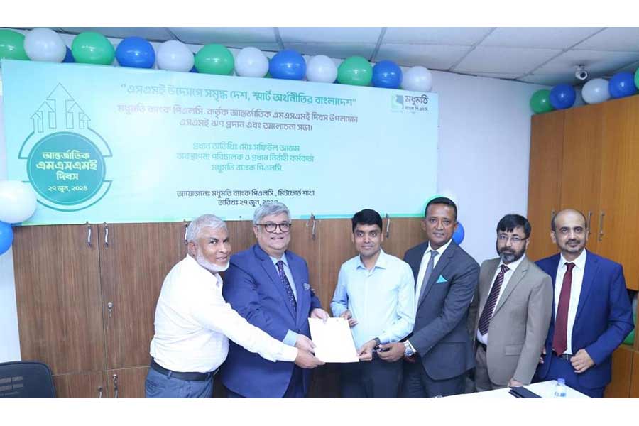 Modhumoti Bank PLC celebrated International MSME Day with the arrangement of a CMSME Loan Disbursement Programme and open discussion session at its Mitford Branch in Dhaka recently.