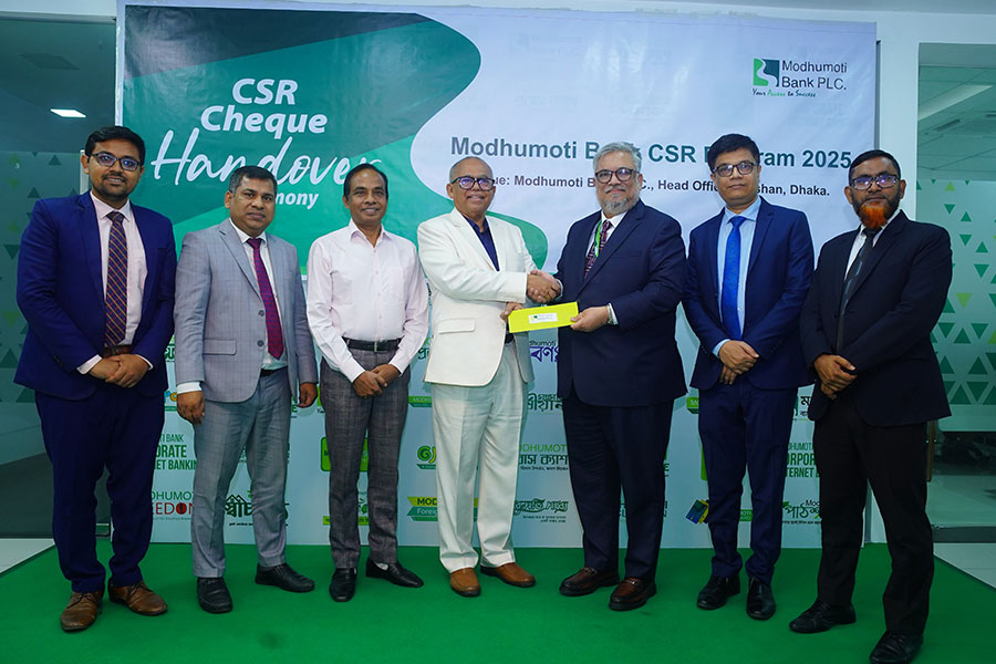 Mr. Md. Shafiul Azam, Managing Director and CEO of Modhumoti Bank PLC handed over the cheque to Mr. Anwar Hossain, Executive Director of HEED Bangladesh at the bank’s Head Office, Gulshan, Dhaka, according to a press release.