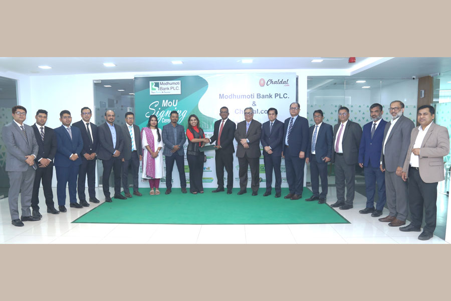 In presence of Mr Md Shafiul Azam, Managing Director & CEO of Modhumoti Bank, Mr Kamrul Hasan Khan, DMD& Chief Business Officer of the bank and Mrs LusbunUditi, Director of Marketing, Chaldal.com signed the agreement on behalf of their respective organisations.