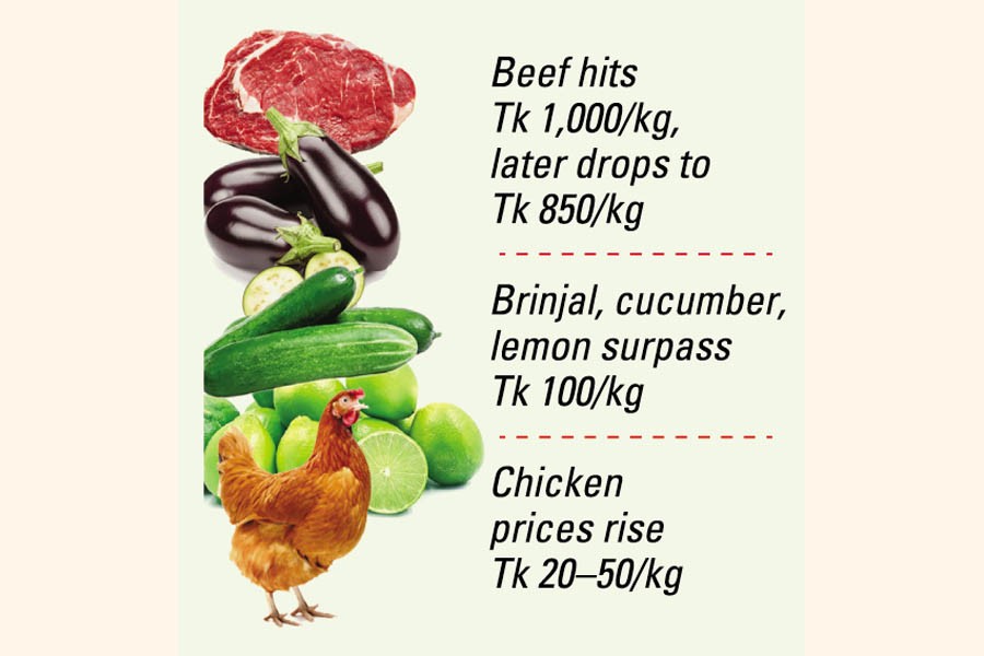 The prices of lemon, cucumber, and brinjal rose two to five times within a short period, and already crossed the "century-mark" even before Ramadan began.