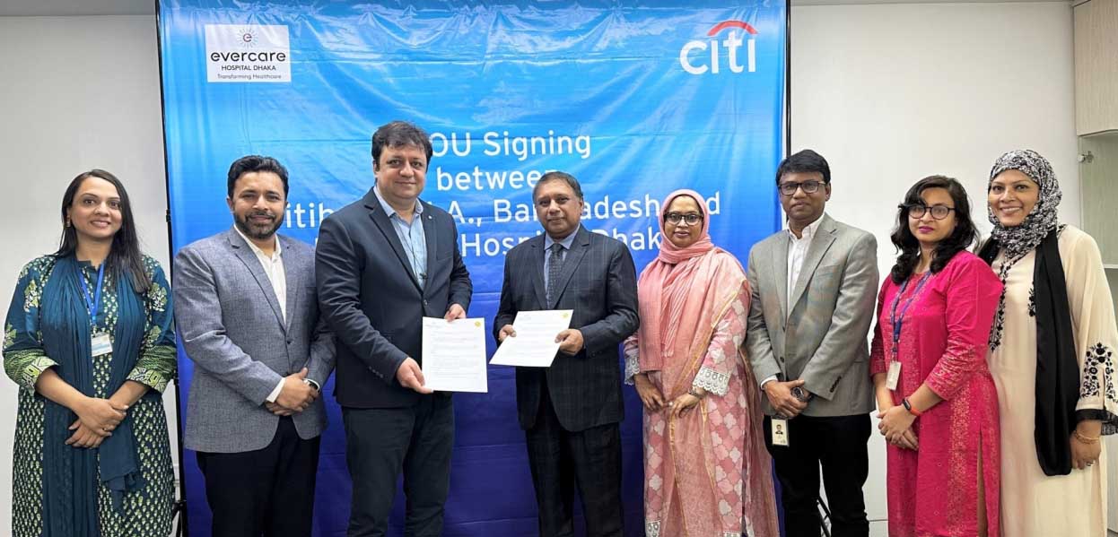 Citibank, N.A., Bangladesh and Evercare Hospitals Bangladesh recently signed a Memorandum of Understanding (MOU). As per the MOU, Citibank, N.A., Bangladesh employees and their families will receive priority services from Evercare Hospitals Bangladesh (Dhaka and Chattogram).