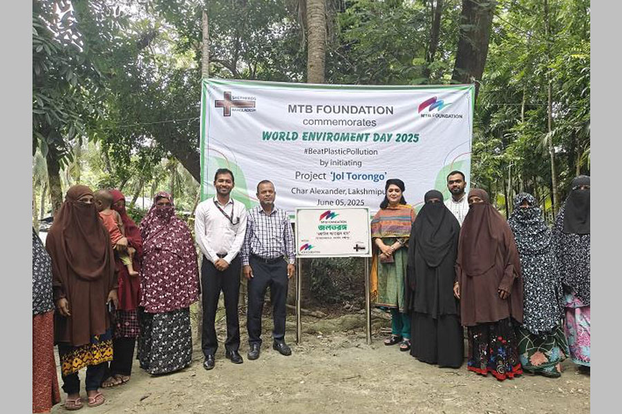 To commemorate World Environment Day 2025 and celebrate this year’s theme – ‘Ending Plastic Pollution’, MTB Foundation recently initiated a Water Access Hub and Sanitation Facilities under the project ‘Jol Torongo’ for the vulnerable community of Char Alexander, Lakshmipur District.
