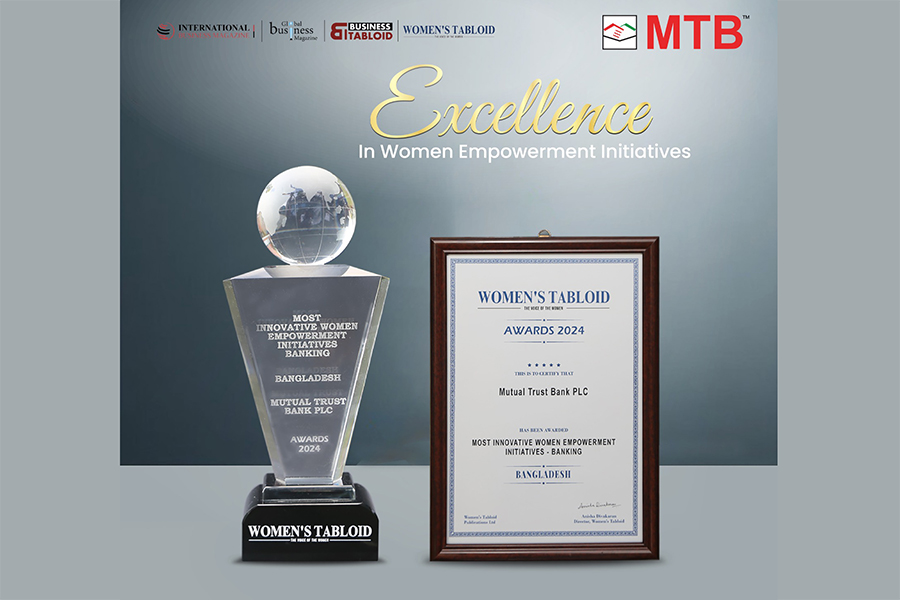 Mutual Trust Bank (MTB) has recently been recognised for its innovative efforts to empower women in Bangladesh. The bank has received the "Most Innovative Women Empowerment Initiatives - Banking - Bangladesh 2024" award from Women's Tabloid for its flagship CSR project, "এমটিবি স্বনির্ভর অঙ্গনা," according to a press release Tuesday.