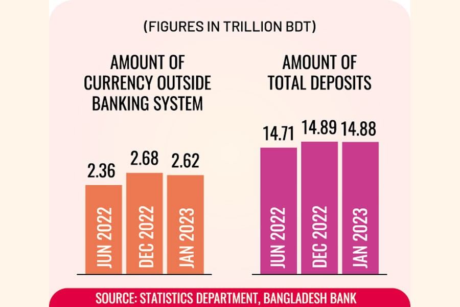 However, in economic jargons, currency outside the banking system is defined as legal tender in the hands of members of the public, which has ballooned in volume in Bangladesh in recent months, as figured out from the currencies in circulation.
