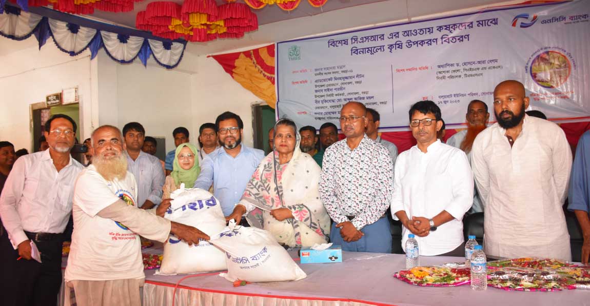 Besides, in Bogura Sadar CSR programme, Managing Director & CEO of NCC Bank Mohammad Mamdudur Rashid presided over the ceremony while Additional District Magistrate Afsana Yaesmin, Director of Bangladesh Bank, Bogura Badiuzzaman Didar, Executive Director of TMSS Prof Dr Hosne-Ara Begum, Deputy Executive Director of TMSS Md Sohrab Ali Khan were present as special guests and distributed various types of seeds, fertiliser and pesticides among the marginal farmers. SEVP & Company Secretary Md Monirul Alam and SVP of CRM Division Muhammad Shahidul Islam along with Manager and officers of Bogura branch of NCC Bank were also present at the ceremony.