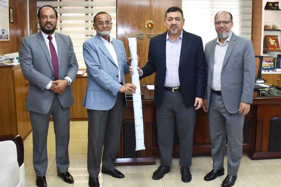 At a recent program held at the Ministry of Home Affairs, Chairman of NCC Bank Md. Nurun Newaz Salim symbolically handed over an umbrella to Dr. Nasimul Gani, Senior Secretary of the Ministry of Home Affairs. Deputy Managing Director of NCC Bank Md. Zakir Anam and Head of Corporate Affairs and Communications Division Md. Anwar Hossain were also present at the event.