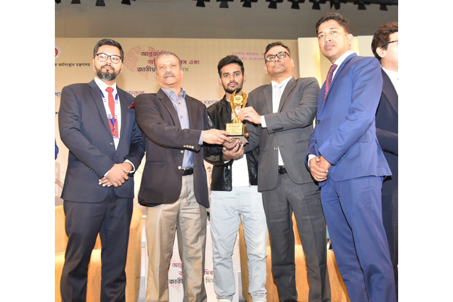 Md. Mahbub Alam, Deputy Managing Director of NCC Bank, received the award from Dr Asif Nazrul, Advisor to the Ministry of Law, Justice and Parliamentary Affairs and the Ministry of Expatriates' Welfare and Overseas Employment alongside Asif Mahmud Shojib Bhuyain, Advisor to the Ministry of Youth & Sports and the Ministry of Local Government, Rural Development and Co-operatives, at a ceremony held on International Migrants Day and National Expatriates Day at the Osmani Memorial Auditorium in Dhaka recently.