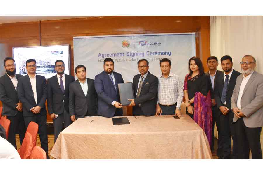 The signing ceremony was held at a local hotel in Dhaka, where Mohammad Ashaduz Zaman, Secretary of DNCC, and M. Shamsul Arefin, Managing Director of NCC Bank, signed and exchanged the agreement documents on behalf of their respective organizations, according to a press release.