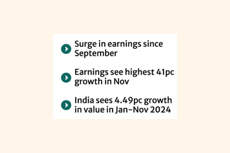 India fetched US$4.36 billion by making shipments of 1.27-billion square meters of apparel during the first 11 months of 2024, which were US$4.18 billion and 1.12-billion square meters of garments in the corresponding period of 2023, data showed.