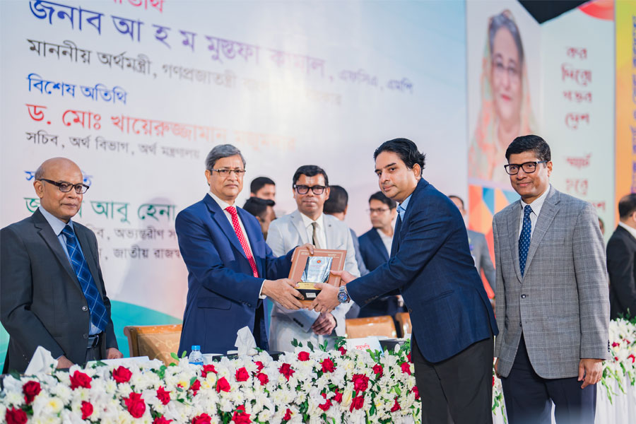 On behalf of Nestlé Bangladesh, Yasith Gehan Attanayake, Finance and Control Director, and Debabrata Roy Chowdhury, Legal, RSA and CA Director, received the award from Abu Hena Md Rahmatul Muneem, Chairman, National Board of Revenue (NBR), and Dr Md Khairuzzaman Mozumder, Secretary, Ministry of Finance.