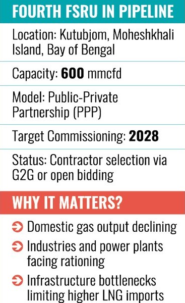 The new one would be the fourth FSRU in the South Asian country, energy and mineral resources division (EMRD) secretary Mohammad Saiful Islam told the Financial Express Wednesday.
