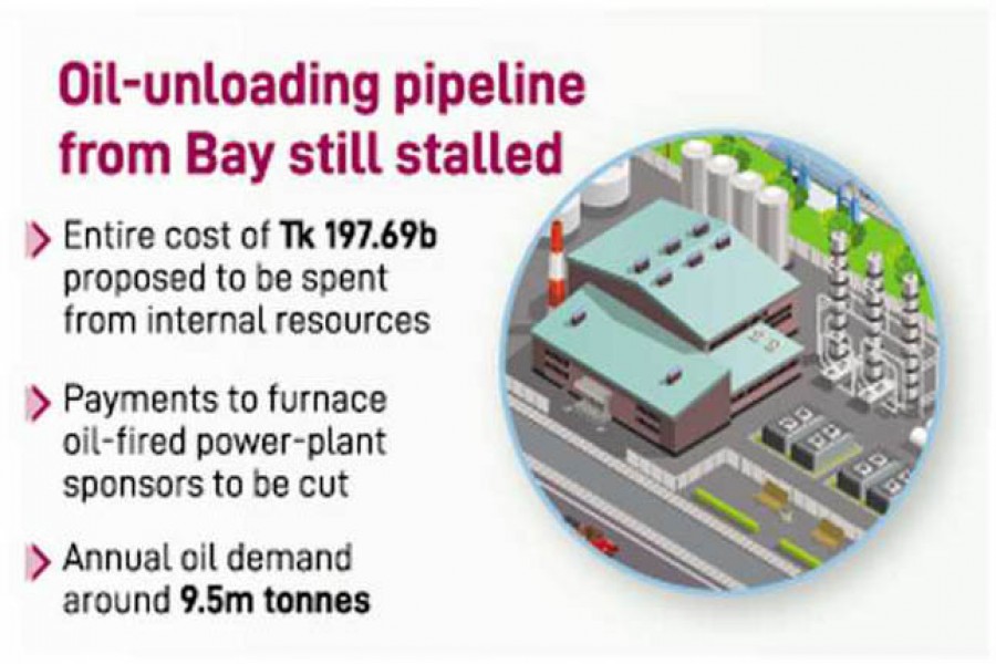 However, sources said Friday, the government is going to endorse refinery-construction project for ERL while installing an oil-unloading pipeline from the Bay of Bengal has been stalled for seven years.