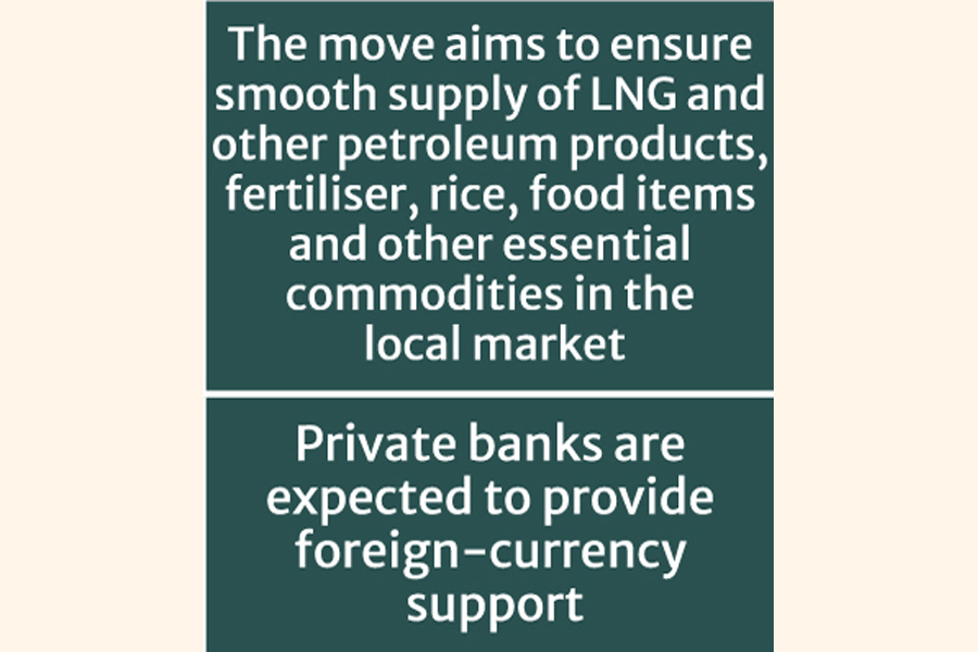 The ministries of power, energy and mineral resources, food, commerce, industries, and agriculture can take the next course of action to open letters of credit (LCs) with private banks for importing rice, LNG and fertiliser.