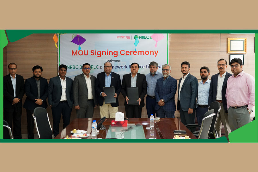 Mr. Md. Rabiul Islam, Managing Director & CEO (Current Charge), NRBC Bank PLC, and Mr. Azadul Haq, Managing Director, Framework Finance signed the MoUs from respective parties. Among the others Mr. Harunur Rashid, DMD & COO, Mr. Kazi Md. Safayet Kabir, SEVP & Head of Retail Banking Division, Mr. Ariful Haque, Manager, FFL were also present at the event.