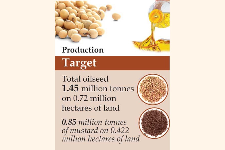 Department of Agriculture Extension deputy director (monitoring unit) Mizanur Rahman said they have set a target to produce 1.45 million tonnes of oilseeds on 0.72 million hectares of land.