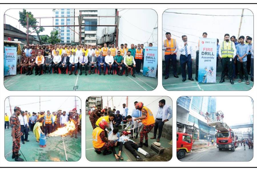 ONE Bank PLC arranged a fire drill program in its Corporate Headquarters in collaboration with the Fire Service & Civil Defense Authority on 21 August, 2025.