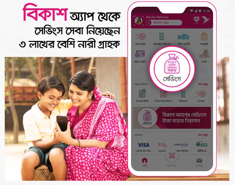Digital savings service has gained huge popularity among all especially women as they get everything including opening savings schemes of banks and financial institutions of their choice or depositing monthly installments in bKash app, says a press release.