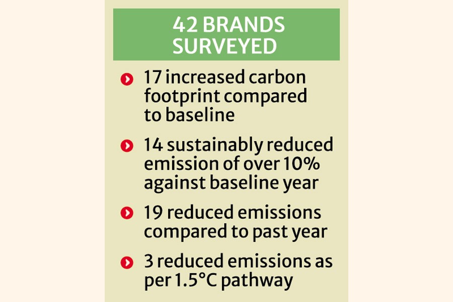 At the same time, 17 (40 per cent) of the 42 brands increased their carbon footprint compared to their baseline, outpacing those on a 1.5°C path by a nearly 6-to-1 margin.