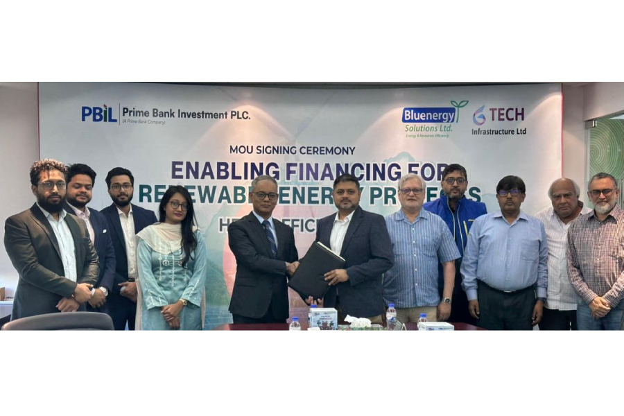 Prime Bank Investment PLC. (PBIL), a leading Bangladeshi investment bank and wholly owned subsidiary of Prime Bank PLC., has signed a strategic Memorandum of Understanding (MoU) with the Consortium of Bluenergy Solutions Ltd. and Gtech Infrastructure Ltd., two of Bangladesh’s pioneers in solar engineering and industrial clean energy development.