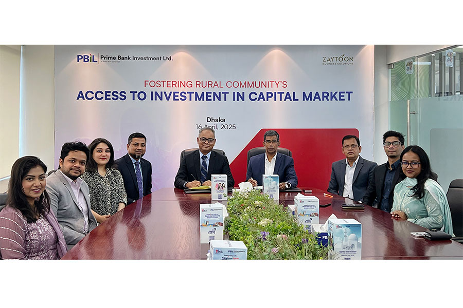 Through this collaboration, PBIL will empower Zaytoon's customers through their Village Digital Booths to invest in government securities and listed stocks digitally via PrimeInvest—PBIL’s flagship, first-of-its’-kind bank managed product-suite for managing capital market investment that offers wide ranging schemes such as capital protected and monthly investment plans serving multiple segments like Women, Probashi, Shariah and Youth.