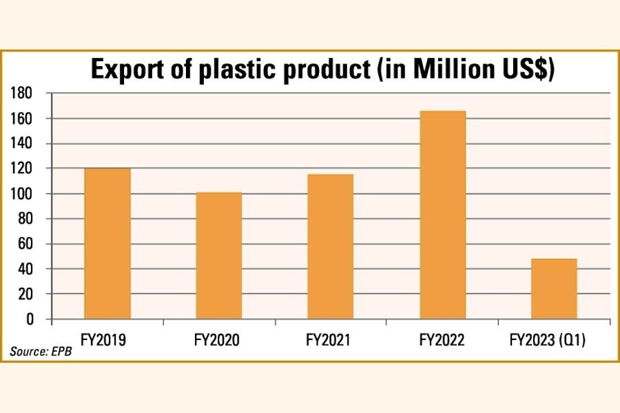 An official at the commerce ministry said Friday the total plastic-product export at the end of the current FY2023 might cross $200 million.