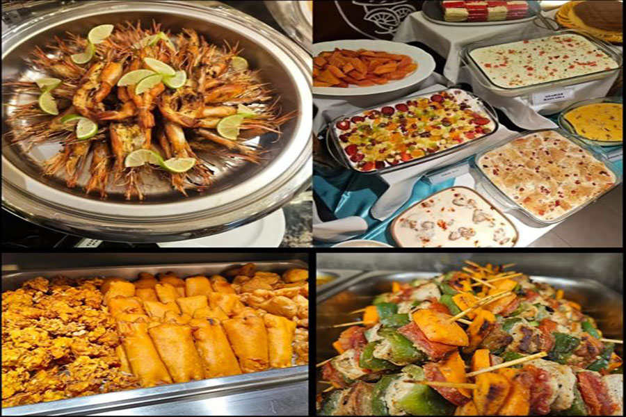 The menu features an extensive range of Middle Eastern and Asian delicacies, such as Hyderabadi Mutton Halim, Grilled Prawn, Whole Fish with Chef’s Special Sauce, Dajaj Al Faham, and Kabsa. Guests can also enjoy traditional favorites and a variety of desserts, including Mahalabia, Umm Ali, pastries, fresh juices, and unlimited ice cream.