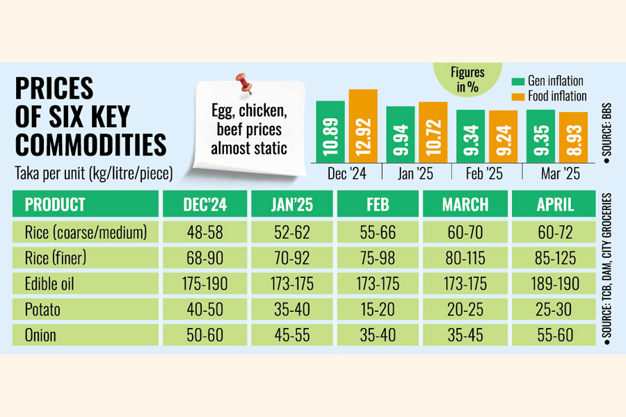 A static price trend in January, February and March had helped reduce food inflation to under 9.0 per cent for the first time in 18 months, as per Bangladesh Bureau of Statistics (BBS) data, which recorded year-on-year inflation at 8.93 per cent in March.