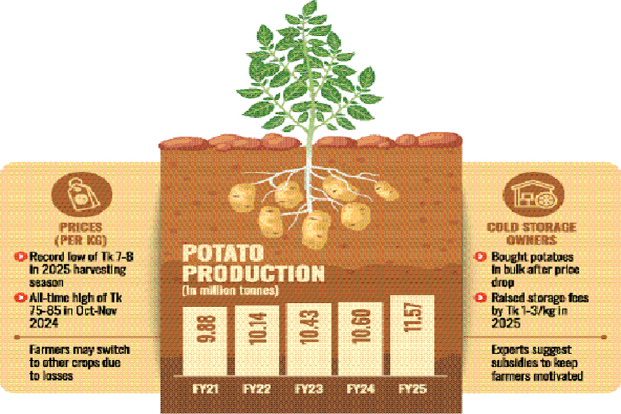 Besides, he claimed 90 per cent of potatoes in cold storage belong to farmers, and not selling those would cause losses of Tk 15 billion for storage owners.