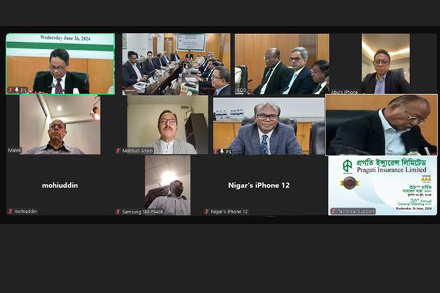 Among others, independent directors of the insurance company Mr Muhammad Jamaluddin, H Naher, Mr Mahbub Anam and Advisor Md Rezaul Karim, CEO Syed Sehab Ullah Al-Manjur(ACII), CFO Mr Amar Krishna Shil, Company Secretary Syed Anisul Hoque and a large number of shareholders participated in the 38th AGM through digital platform and expressed their satisfaction with the performance of the company.