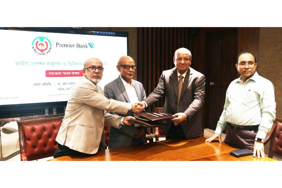 Mr. Mohammad Abu Jafar, Managing Director & CEO, The Premier Bank PLC and Md. Mahiuddin Khan, Executive Chairman, National Pension Authority has signed the Mou on behalf of their respective organizations with the presence of Dr. Md. Khairuzzaman Mozumder, Secretary, Finance Division, Ministry of Finance.