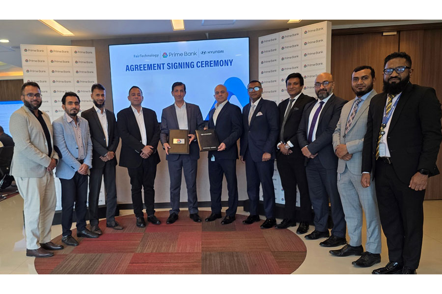 The agreement was signed by Mamur Ahmed, Senior Executive Vice President & Head of Branch Distribution, on behalf of Prime Bank and Md. Zahidul Kabir, Head of Treasury of Fair Group, on behalf of Fair Technology Limited (Hyundai).