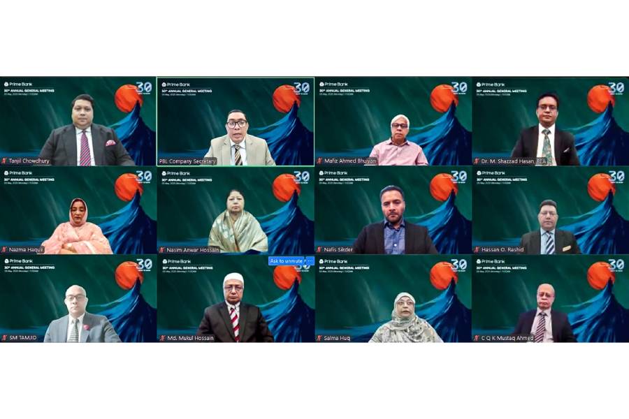 Prime Bank PLC successfully conducted its 30th Annual General Meeting (AGM) virtually on Monday (May 5). The session was chaired by Board Chairman, Tanjil Chowdhury and attended by 258 registered shareholders, board members, and senior officials.