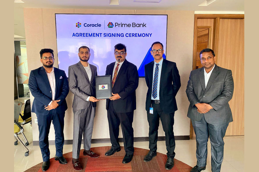 Md. Nazeem A. Choudhury, Deputy Managing Director of Prime Bank PLC and Sheikh Hafeez Maeen, Director and Country Representative (Bangladesh) of Coracle signed the agreement on behalf of their respective organisations.