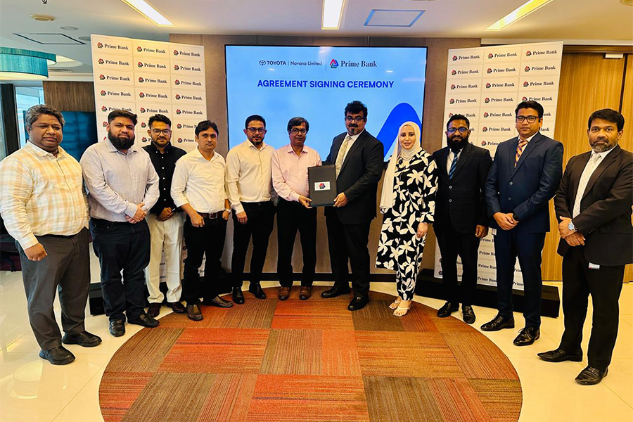 Prime Bank PLC has announced a new partnership with Toyota–Navana Limited, the authorised distributor of Toyota vehicles in Bangladesh. The agreement was formalised during a signing ceremony held recently at Prime Bank's Gulshan Corporate Office.