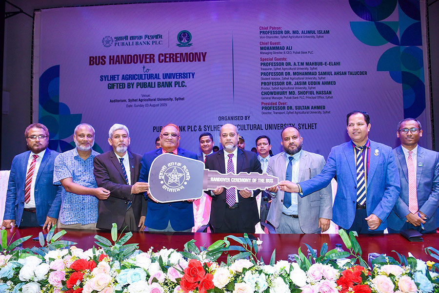 Mohammad Ali, Managing Director & CEO of Pubali Bank PLC. handed over the key to Professor Dr. Md. Alimul Islam, Vice-Chancellor of Sylhet Agricultural University at a function organized at the auditorium of the university, according to a media release.