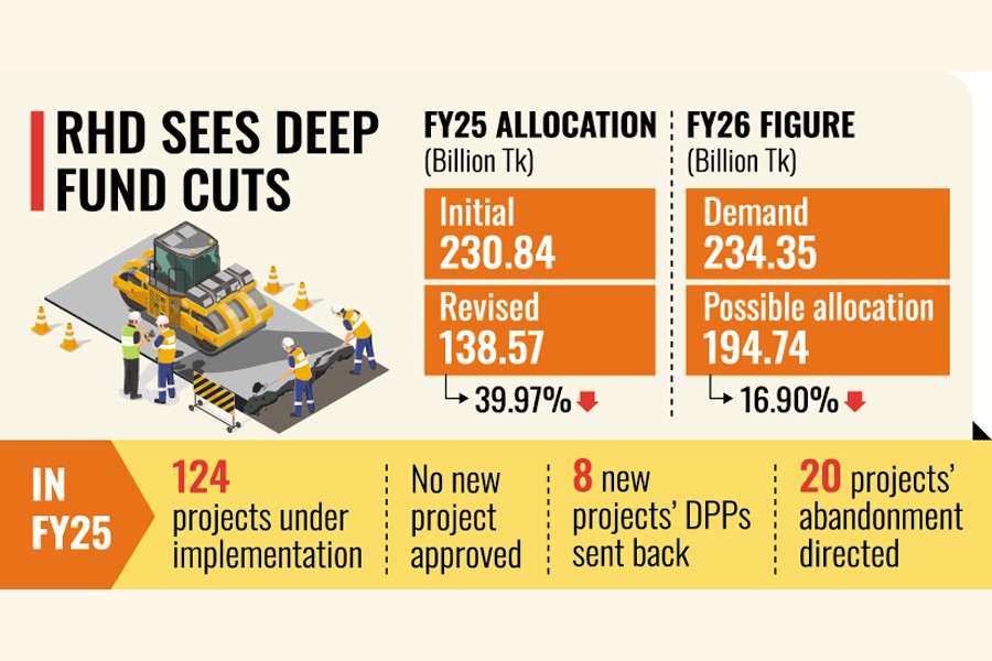 Sources said the RHD's proposed projects costing between Tk 3.0 billion and Tk 20 billion were rejected, but a Tk 60 billion border road development scheme is likely to be approved soon.