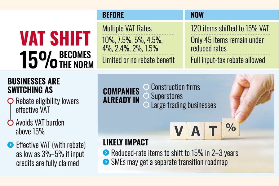 Bangladesh is transitioning into a ramped-up 15-percent VAT regime amid some concerns, but a redeeming feature is the provision for rebate meant for reducing the overall tax incidence.