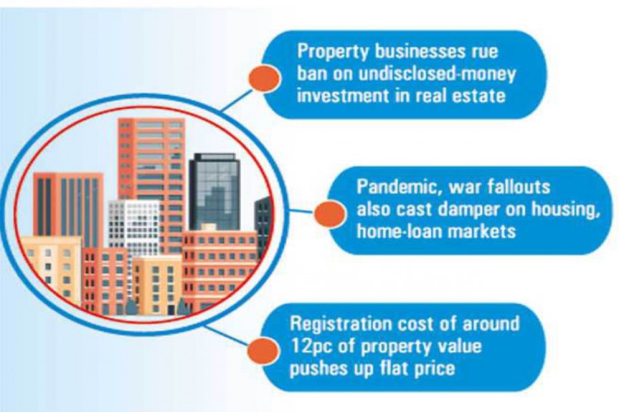 Bangladesh's real-estate sector passes through bad days for both seller and buyer as property sales plummeted for price spiral fuelled by fallouts from the pandemic and the Ukraine war, industry insiders say.