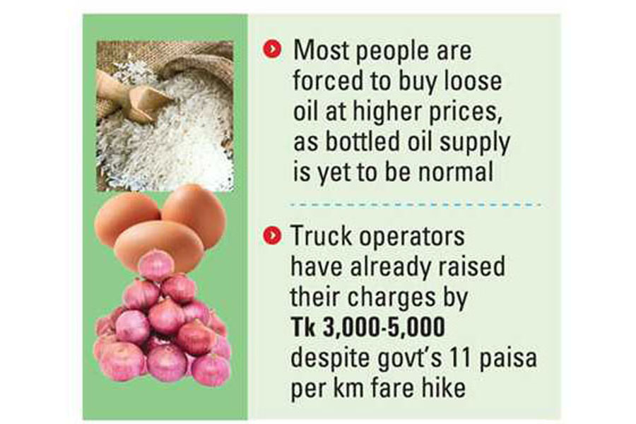 "Although the government increased diesel-based transport fare by only 11 paisa per kilometre, truck operators have already raised their charges by Tk 3,000-5,000 further," said Junawed Ali, a Mohammadpur Agricultural Market-based trader.