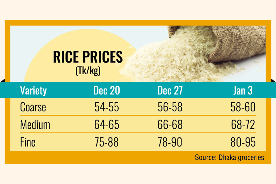 The prices are increasing at a time when Aman harvesting is at the final stage, with 95 per cent collected till January 2, says the Department of Agricultural Extension (DAE).