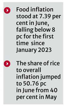 Medium varieties of rice contributed 25 per cent to overall food inflation, while coarse varieties contributed 17.82 per cent in June. All three rice varieties-fine, medium, and coarse-saw a 15 per cent price hike year-on-year in June, said GED.
