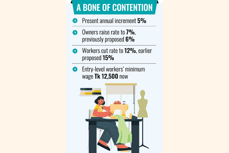 Talking to The Financial Express, Babul Akter, Bangladesh Garments and Industrial Workers Federation's general secretary, said they agreed on a reduced rate of 12 per cent annual increment from their previous proposal of 15 per cent until the wages were re-fixed.