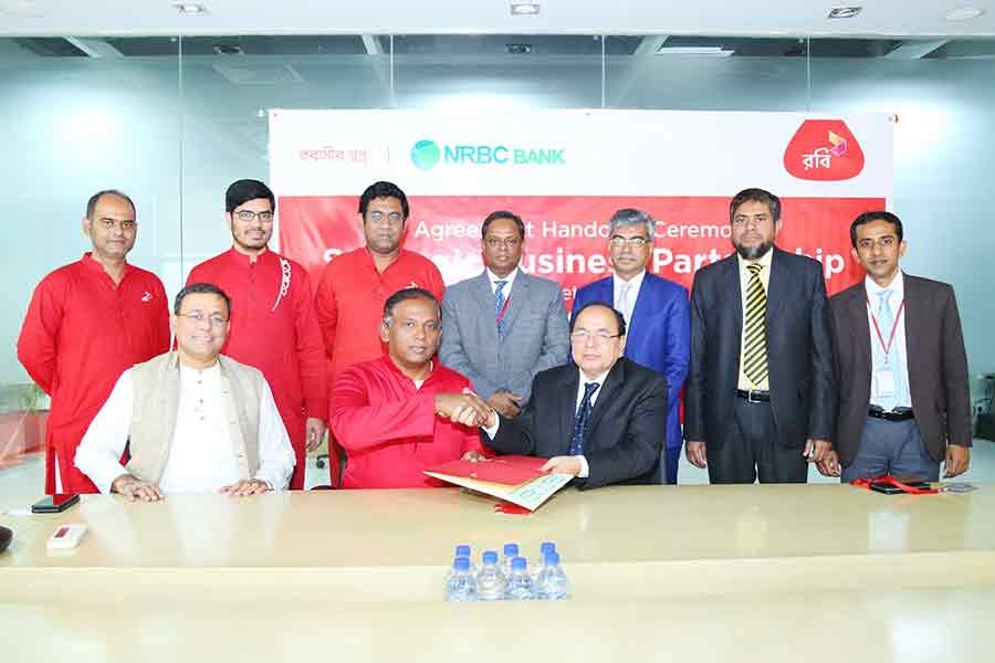 Robi’s Managing Director and CEO, Mahtab Uddin Ahmed and NRB Commercial Bank’s Managing Director, Kazi Md. Talha signed the agreement on behalf of their respective sides.