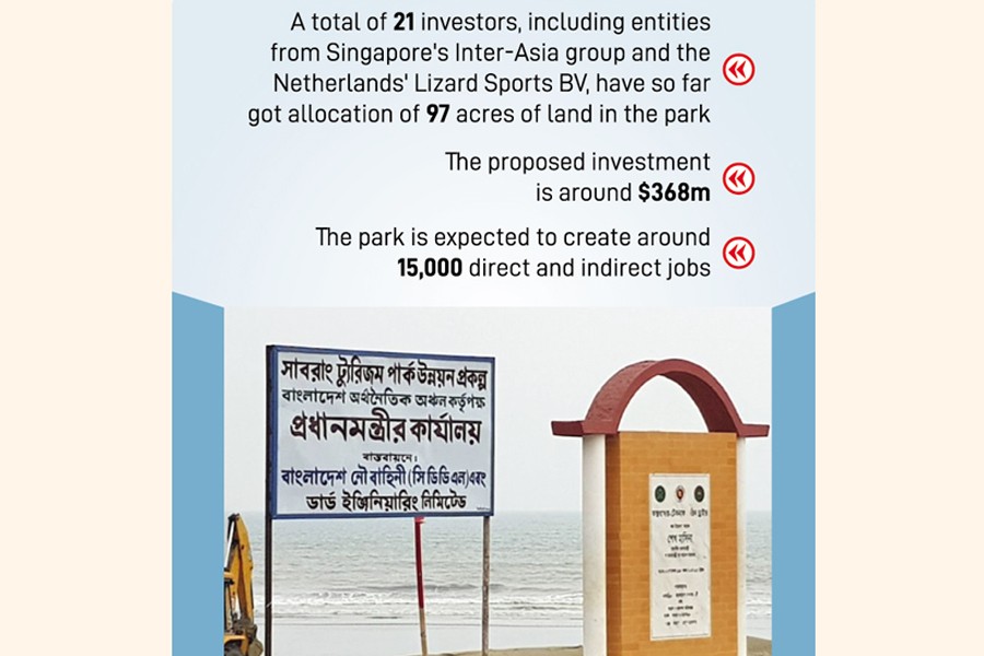 Sabrang Tourism Park is being built on an area of 940 acres in Teknaf upazila of Cox's Bazar, the key tourism attraction of the country.