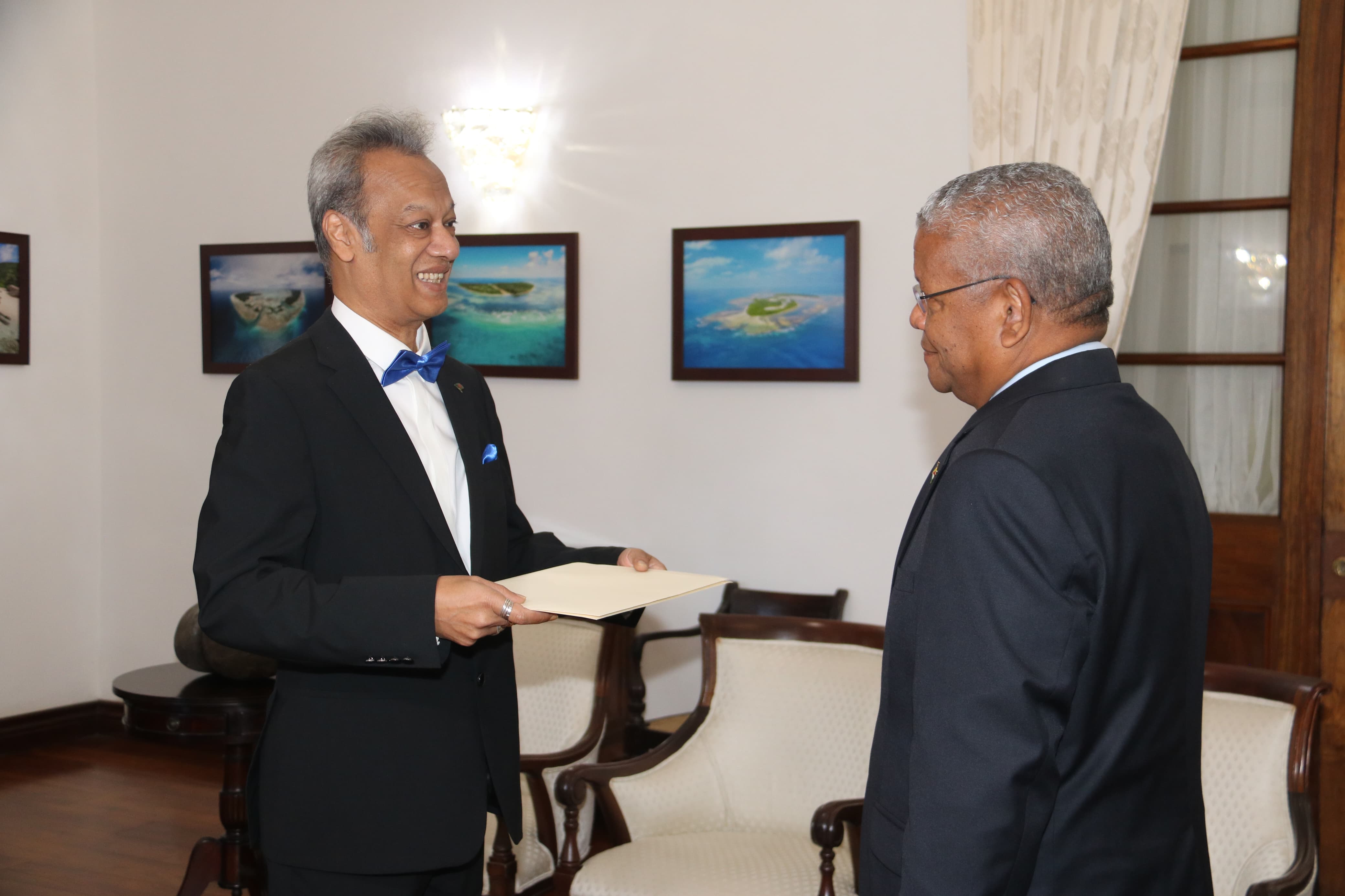 Non-resident High Commissioner of Bangladesh to Seychelles Dr Zokey Ahad presented his credentials to President Wavel Ramkalawan in a ceremony at the State House on Tuesday.