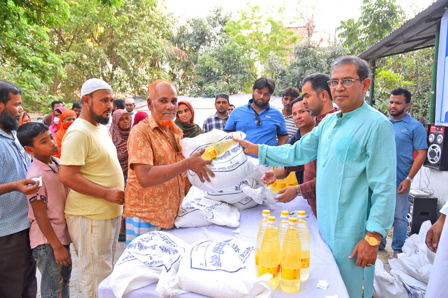The Dhaka North City Corporation (DNCC) Ward Councilor No. 39 Shafiqul Islam Basek and the SEVP of Shahjalal Islami Bank Limited, Head of Public Relations Division and Bank Foundation Md Shamsuddoha (Shimu) distributed the relief items. Each receiver got 05 kg of rice, 01 kg of dal, 01 kg of sugar and 1 liter of oil, according to a statement.