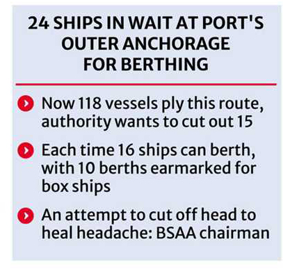 To justify the pruning measure Mr Karim said, 'The rise in number of ships led to increased vessel congestions at the port, higher waiting time at outer anchorage, and a long queue of waiting ships there."