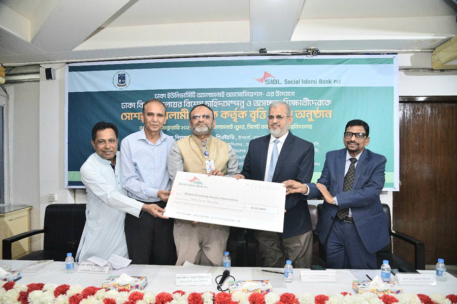 Social Islami Bank PLC (SIBL) has provided a donation of Tk 3.6 million (Tk 36 lakh) to Dhaka University to provide scholarships for underprivileged students with special needs. SIBL Chairman Professor Dr M Sadiqul Islam handed over the cheque to Dhaka University Vice-Chancellor Professor Dr Niaz Ahmed Khan at a ceremony held on Friday (February 28), according to a press release.