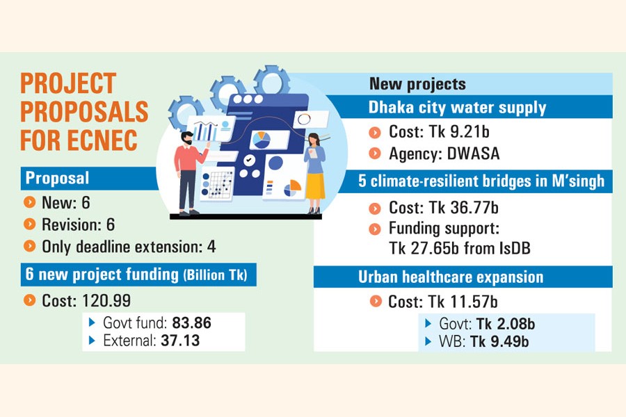 The six new projects involve an estimated outlay of Tk 120.99 billion, say sources at the Planning Commission.