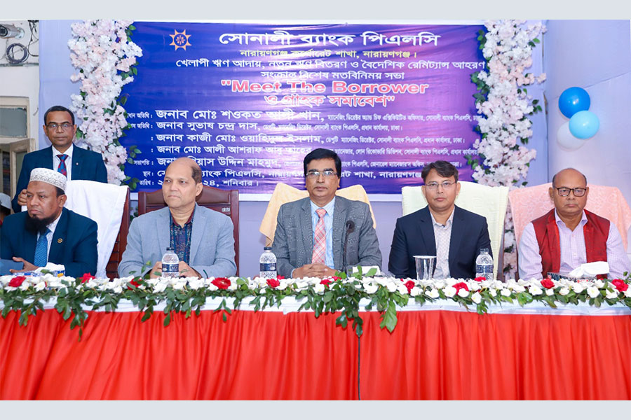 Sonali Bank PLC Narayanganj corporate branch arranged a view exchange meeting about recovering classified loans, new loan disbursement, and collecting foreign remittances on the occasion of ‘Meet the Borrower & Customer Gathering at Narayanganj on Saturday.